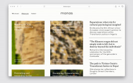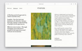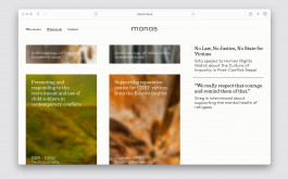 Manas is an international organisation for justice and recovery in response to mass-violence. We worked on the identity to develop a reassuring and quiet visual language.Â